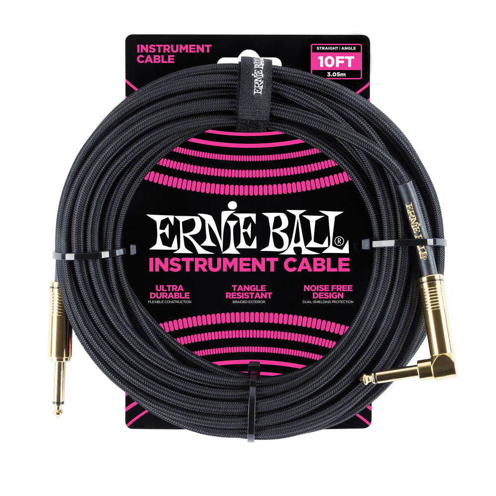 Ernie Ball instrument cables feature a high-quality design made with superior components that are built to last. Dual-conductors deliver reliably clear tone with crisp highs, tight mids, and rich harmonics. Multiple shielding materials preserve the signal with low handling noise, and the braided jacket exterior provides a tangle-resistant experience. Cable length 10ft (3.05m).