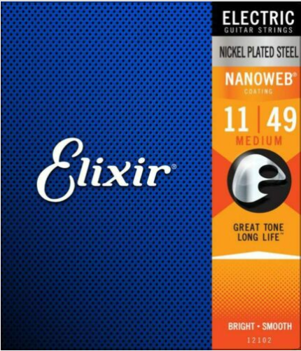 - Elixir® 12102 Electric Nickel Plated Steel Strings with NANOWEB® 11-49