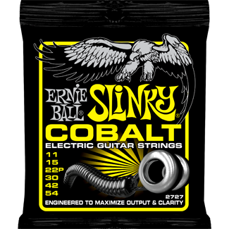 Ernie Ball 2727 Cobalt Beefy Slinky 11-54 Electric Guitar Strings - Engineered to maximize output and clarity, Ernie Ball Cobalt Slinky Guitar Strings are the latest innovation in string technology. Seeking to provide guitarists and bassists with a new voice, Cobalt strings provide an extended dynamic range, incredible harmonic response, increased low end, and crisp, clear highs.
