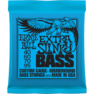 Ernie Ball 2835 Extra Slinky 40-95 Electric Bass Strings - Ernie Ball Extra Slinky Bass Strings are round-wound for maximum clarity and serious punch. Each bass string is manufactured with the finest and freshest raw materials in the beautiful Coachella Valley of Southern California. The list of endorsers for Ernie Ball Slinky bass strings reads like a who's who of top selling artists.