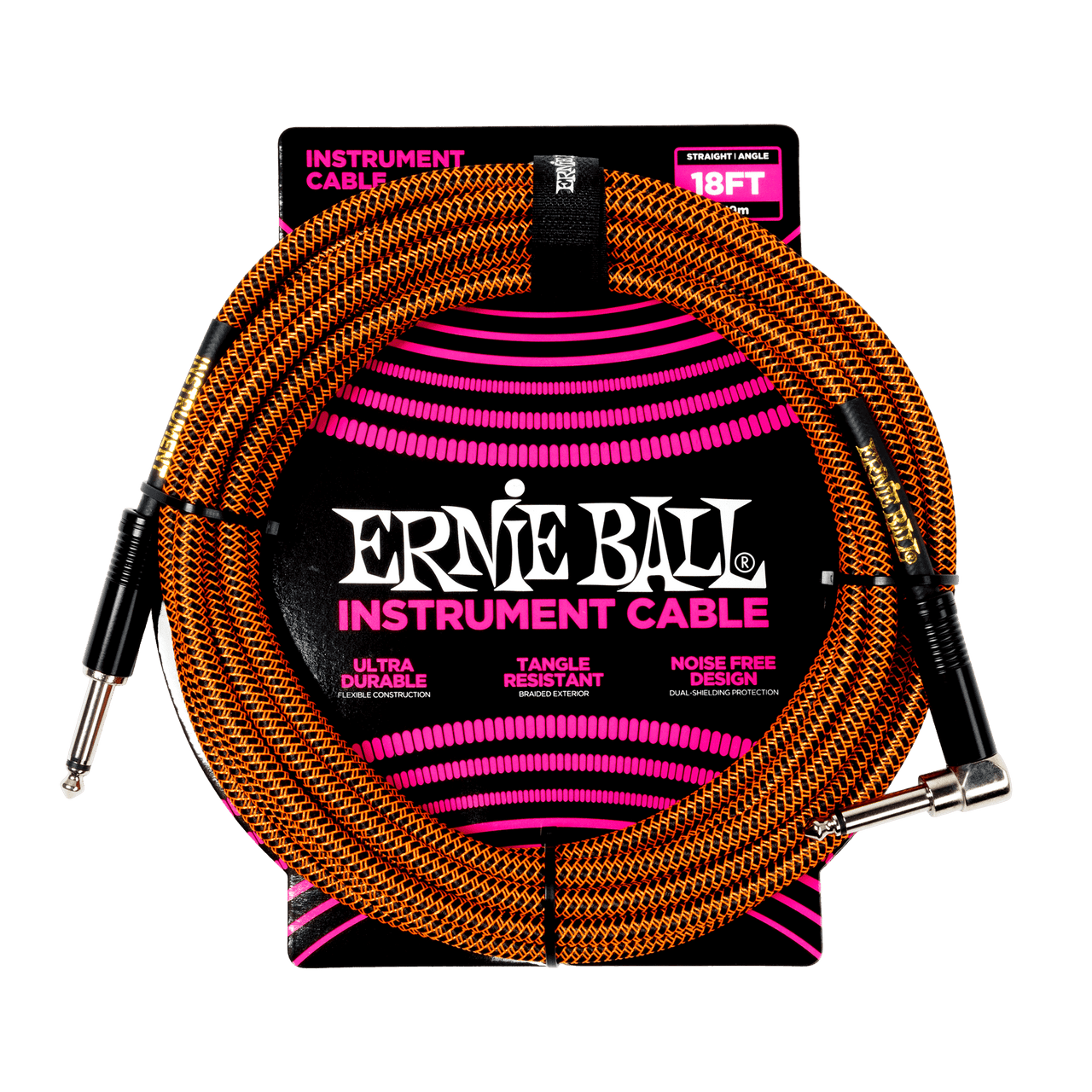- Ernie Ball Braided Instrument Cable Straight/Angle 18ft - Pumpkin Pie