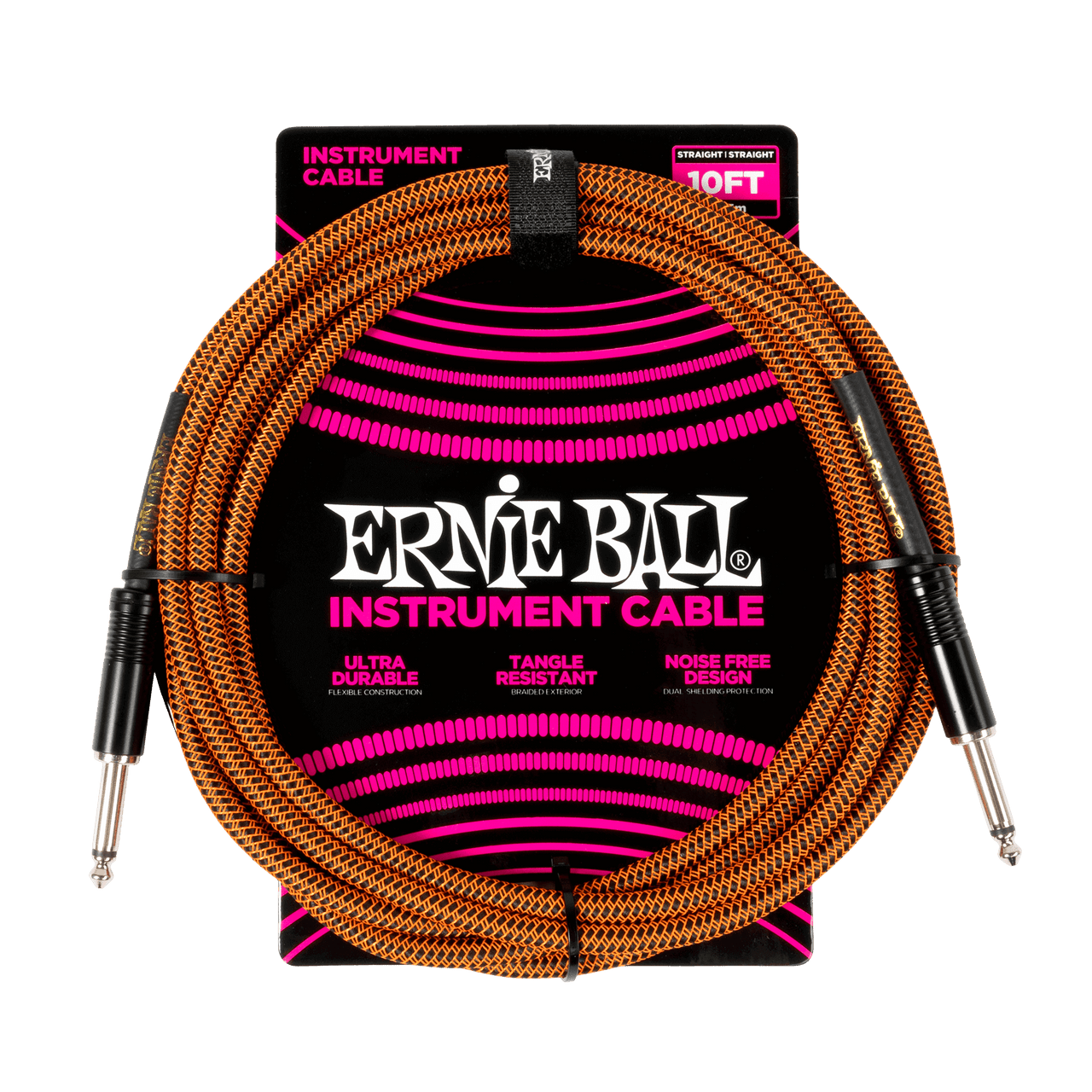 - Ernie Ball Braided Instrument Cable Straight/Straight 10ft - Pumpkin Pie