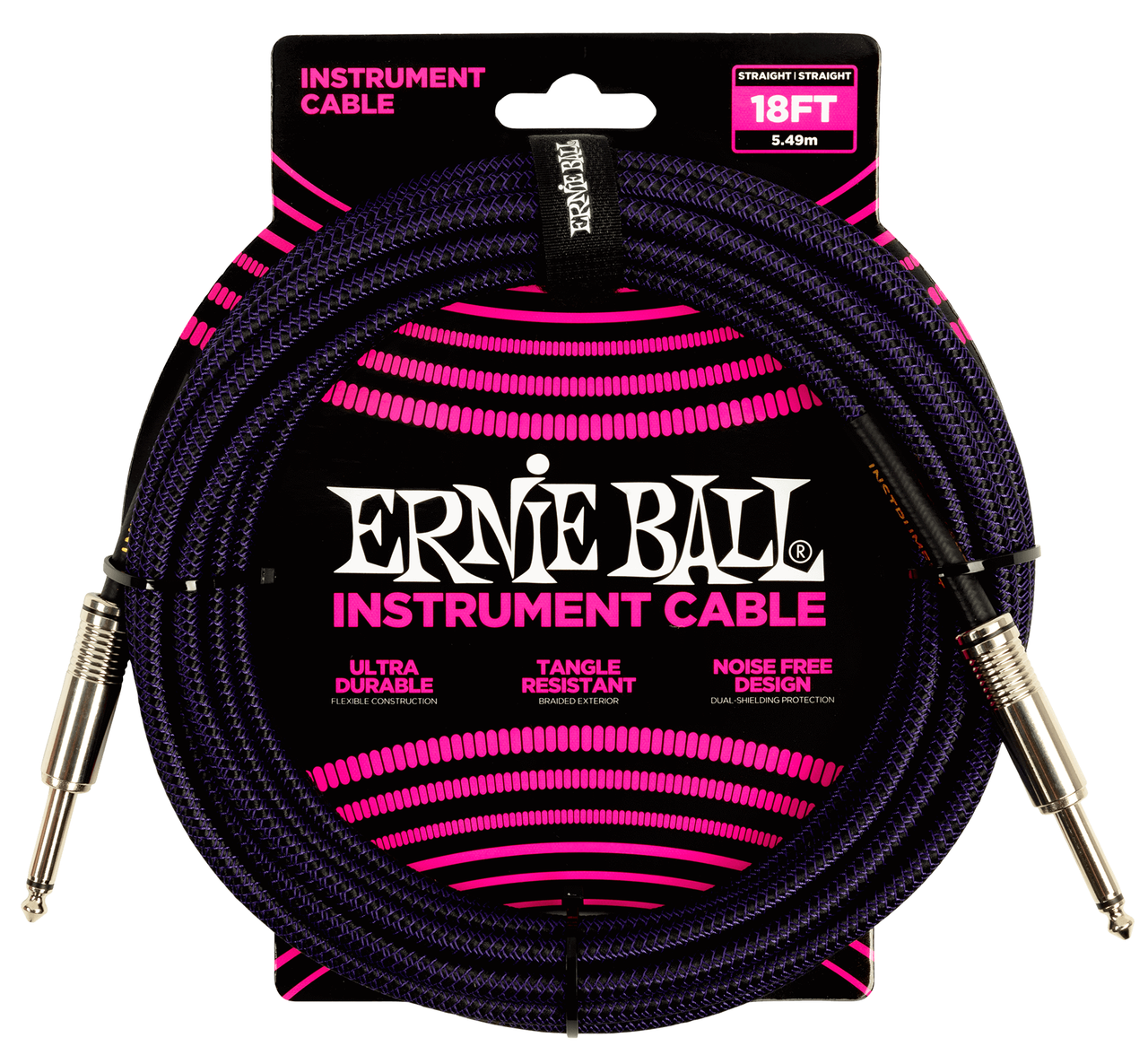 - Ernie Ball Braided Instrument Cable Straight/Straight 18ft - Purple/Black