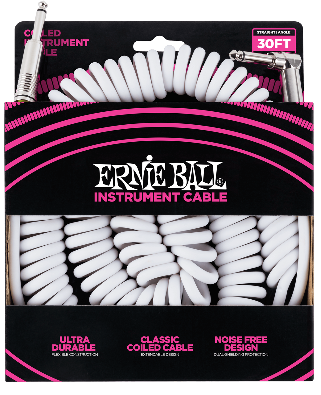 - Ernie Ball Coiled Instrument Cable Straight/Angle 30ft - White