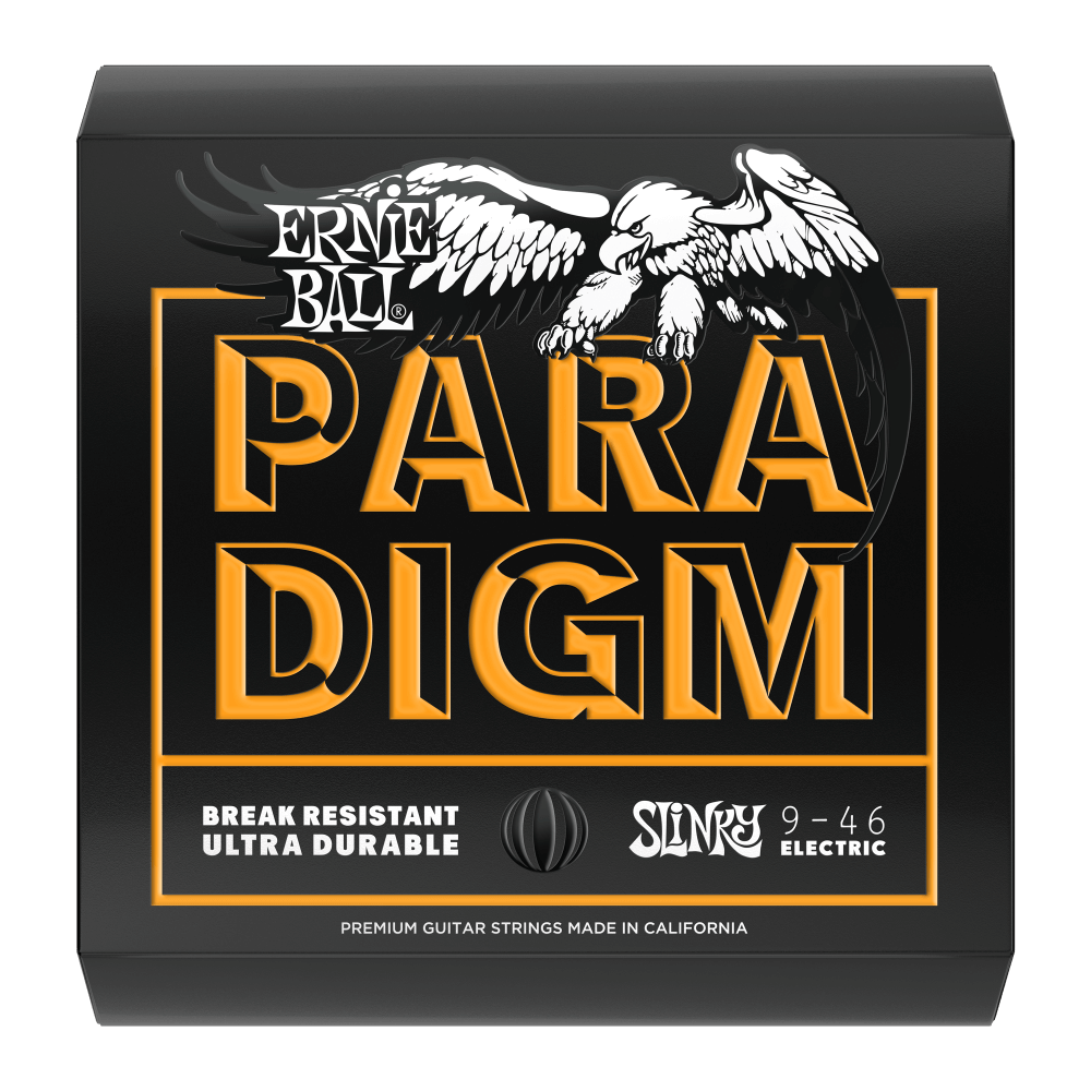 Paradigm Slinkys are the most break resistant strings on the planet - GUARANTEED. Paradigm Electric Slinky sets provide unprecedented strength and longer string life while retaining 100% Slinky tone and feel. Ernie Ball's industry leading ultra-high strength steel is included in both the wound and plain strings along with a patented reinforcement at the ball end twist of each plain string to provide superior tensile and fatigue strength for strings that lock into tune fast and hold up under the most stressful playing styles and conditions. The coupling of Ernie Ball's Everlast nanotreatment with breakthrough plasma enhanced wrap wire provides added corrosion resistance and reduced accumulation of tone-robbing buildup and debris. Experience the first set of longer lasting strings that are worth playing with all benefits and no compromises. Gauges .009, .011, .016, .026, .036, .046