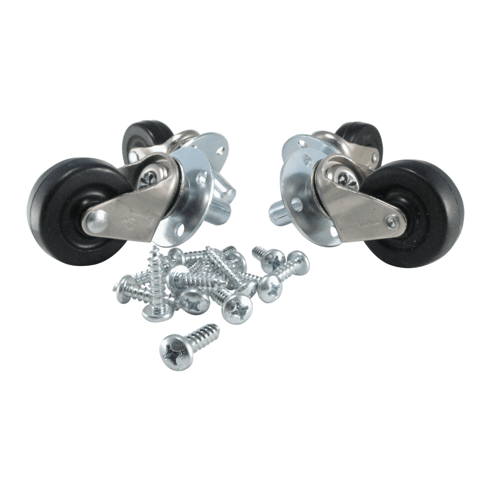 Set of 4, pop-out socket mount. 2" diameter x 7/8" Ruberex wheel split level. Maximum recommended weight is 70 lbs per caster.