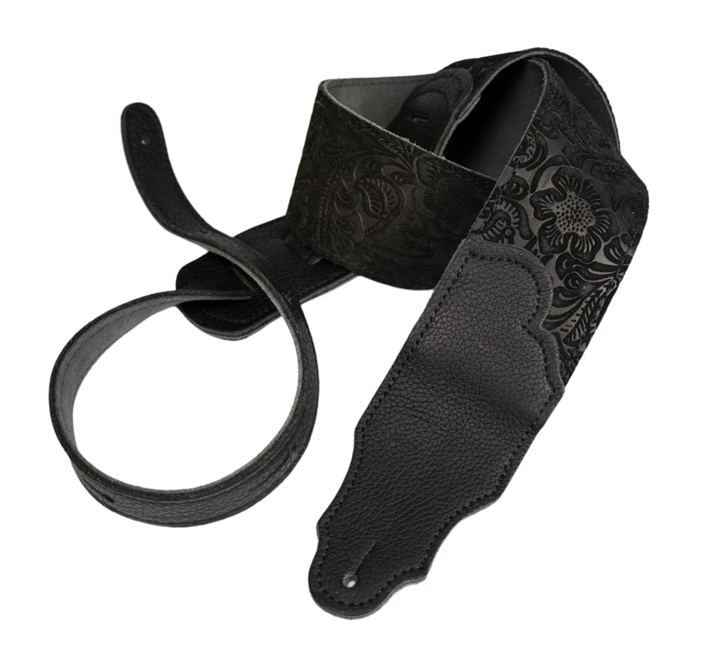 The richly embossed suede and the plush, softly pebbled glove leather end tab offer a beautiful blend of complimentary textures. The pattern in the suede seems inspired by the exquisite fingerboard inlay work of our industries most accomplished artisans.