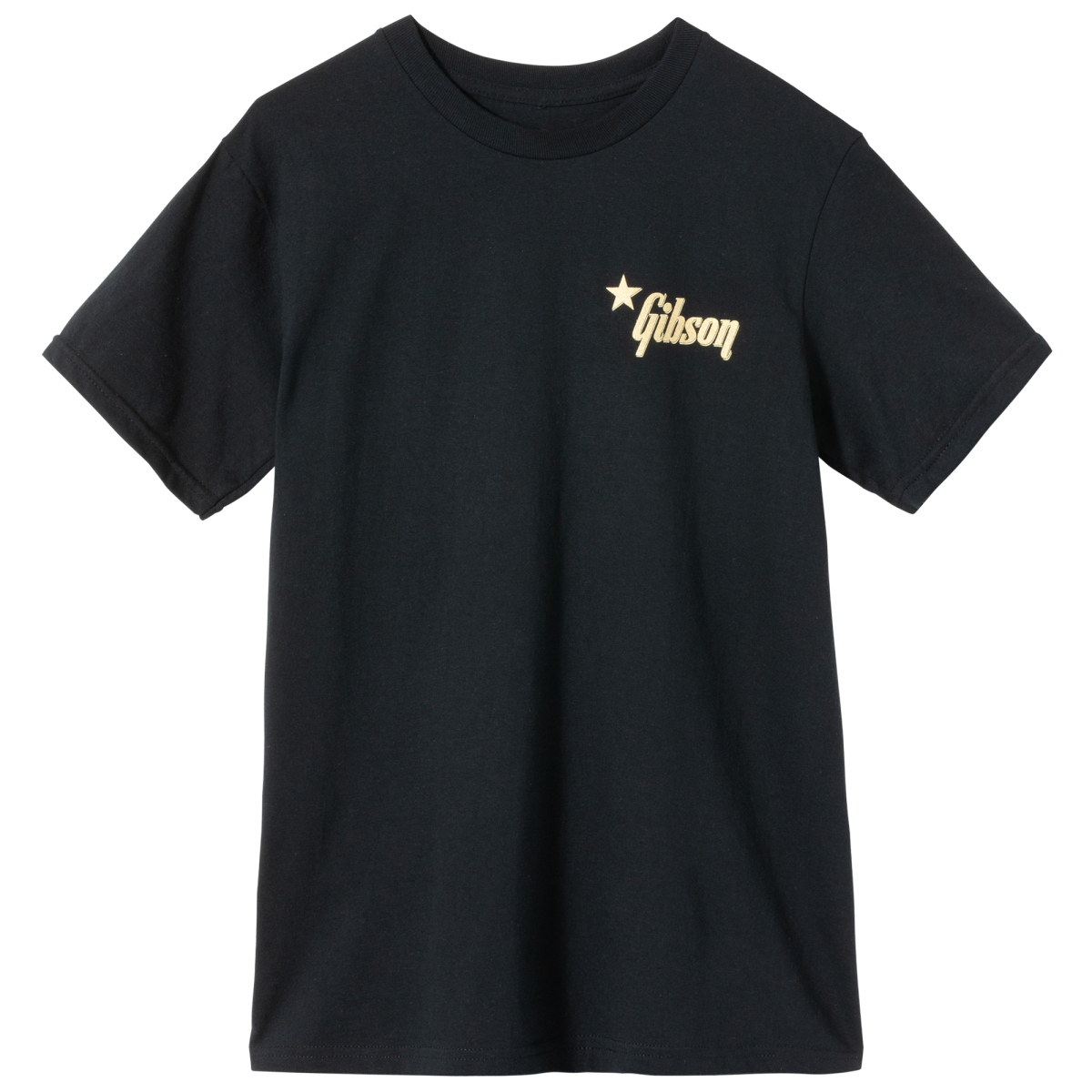 With a design paying homage to Gibson electronics, this heavyweight cotton tee features the vintage Gibson Star logo on the front left chest and back in metallic gold and the famous PATENT APPLIED FOR sticker found on the original humbucking pickups invented by Gibson in the 50s with ORIGINAL TONE underneath on the back.