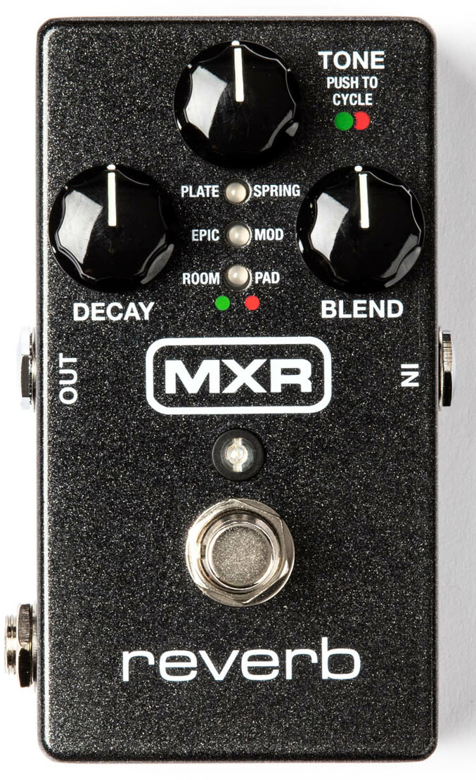 The MXR Reverb delivers six distinct high end reverb styles, each exquisitely crafted and tuned by the award-winning MXR design team. It all comes in a standard-sized MXR box with a simple three-knob setup and a hi-fi analog dry path with a massive 20 volts of headroom thanks to Constant Headroom Technology™. Each reverb style is as richly detailed as any found in the highest-end rack units and plug-ins, and all you have to do to step through them is push the Tone knob.