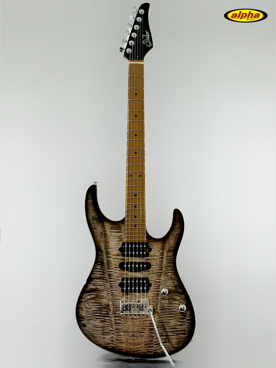 The Modern Plus features a roasted maple neck with pau ferro or maple fingerboard. The Modern Plus retains many of the original specifications of the Modern Pro including the sleek elliptical neck profile, balanced asymmetrical body, innovative neck heel and stunning flame maple top. Proprietary Suhr locking tuners and 2-Post tremolo provides superior tuning stability.