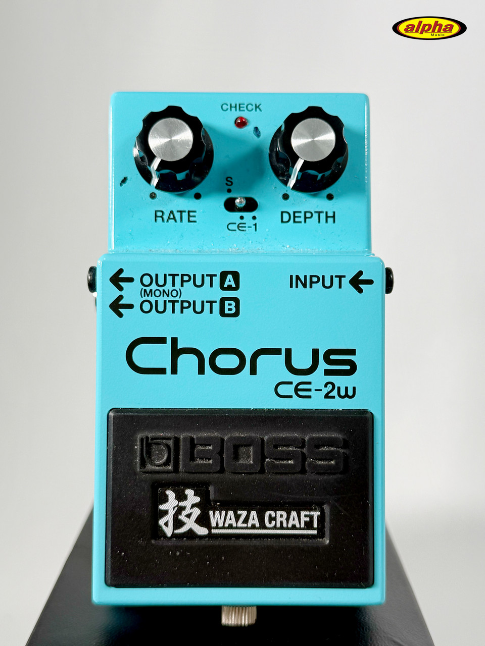 Launched in 1976, the CE-1 Chorus Ensemble was not only the world’s first chorus effect pedal, but also the very first BOSS pedal. Three years later, this inventive new sound was squeezed into the blue CE-2 Chorus, and chorus pedals have remained in the compact lineup ever since. Four decades on, the spacious modulated tone of the signature BOSS effect is still loved by musicians everywhere. In 2016, to celebrate the 40th anniversary of BOSS innovation, the original analog chorus sounds are now reborn with the Waza Craft CE-2W. The CE-2W’s Standard mode faithfully recreates the classic CE-2 chorus sound, and adds an expansive new sound field with stereo output, which was unavailable in the mono CE-2. CE-1 mode fully reproduces the stereo chorus and vibrato sounds of the legendary CE-1, with the addition of variable chorus depth not available in the original pedal. To commemorate the birth of BOSS effects, the CE-2W is made exclusively in Japan, just as the original CE-1 and CE-2 were.